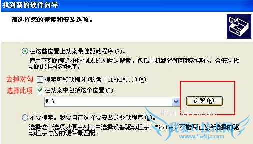 7.去掉搜索可移动媒体前面的对勾,选择下面的 在搜索中包含这个位置,然后点击浏览