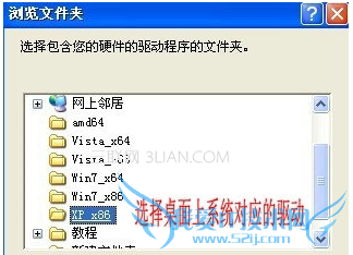 8.从菜单下拉框中,选择桌面位置上的对应驱动,我们这里选择XP*86(XP32位),然后点击确定