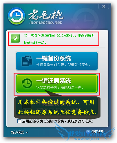 欢迎您访问我爱IT技术网,今天小编为你分享的电脑教程是日常使用电脑方面的电脑常识:老毛桃一键还原详细使用教程,学会并运用这些电脑常识,让你快速玩转电脑及互联网方面的知识,下面是详细的分享!