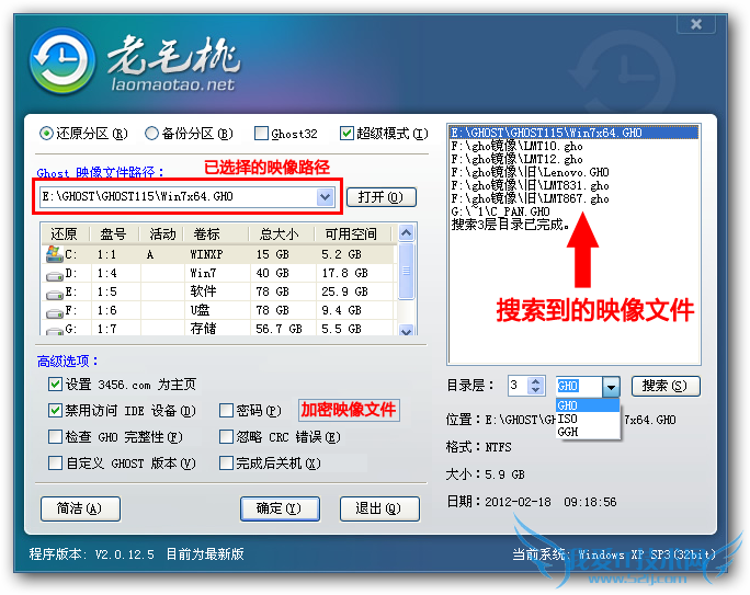 3、高级项“搜索”开放自定后缀,可搜索任何后缀的GHO还原