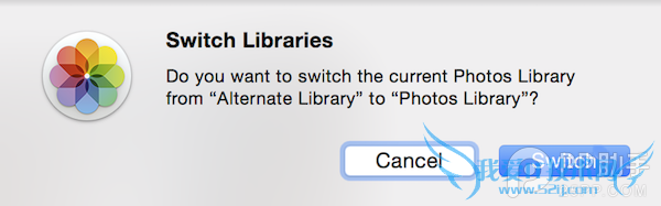 6.要在图库之间切换,打开图片文件夹并双击希望使用的图库。你也可以按住 Mac 上的 Option 键,并点击 dock 栏的照片应用,然后在列出的图库中选择。