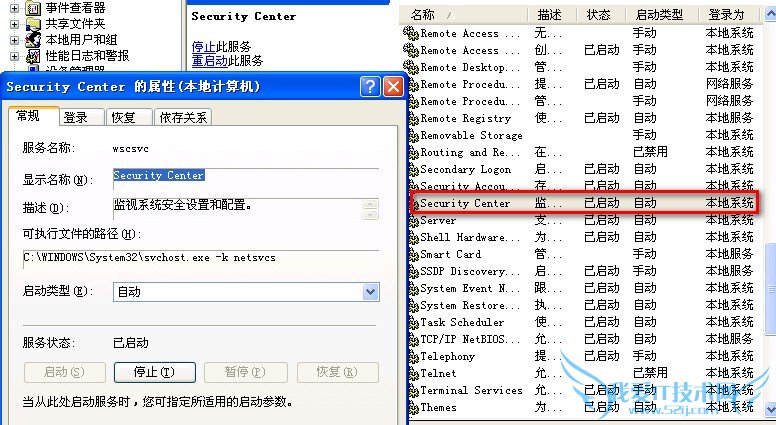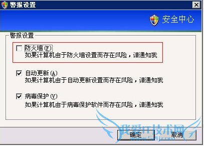 WinXP从SP2后加入一个“安全中心”控制台,主要检测系统中病毒防护、防火墙、自动更新的状态。如果检测不到,就会在开机时自动弹出红色盾牌以示警告。