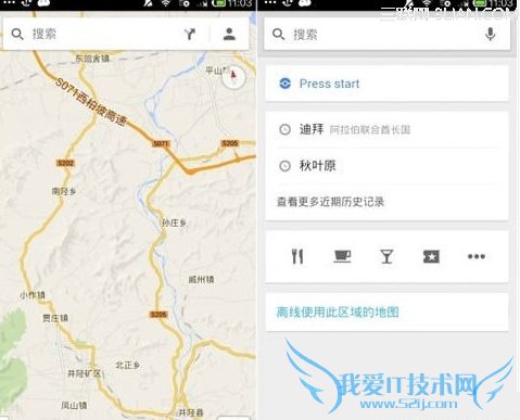 第二步、进入谷歌地图app后,大家可以在搜索栏的下放看到“Press Start”按钮,点击按钮,你的口袋妖怪捕捉之旅就开始了。