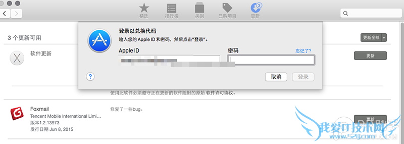 5、点击“下载OS X Yosemite Public Beta 版”后系统自动跳入App Store,提示输入Apple ID账号及密码,输入即可。