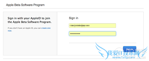 1、首先前往Apple Public Beta下载页面,输入已经加入Apple Beta软件计划的Apple ID,点击“sign in”登录。
