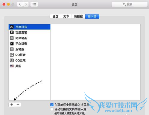 4、接着请点击窗口左下角的“+”按钮,添加新的输入法。