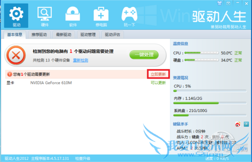 对于菜鸟而言,使用驱动人生2012来更新显卡等驱动程序,是最简单不过的事情!