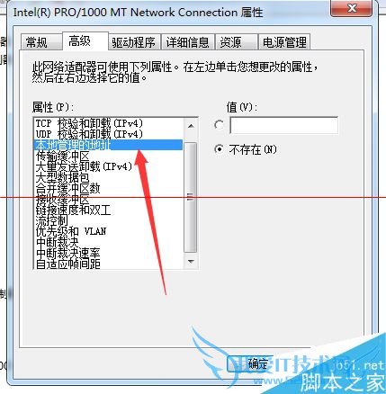 3、在网卡属性窗口中,先点击顶部的“高级”选项卡,在属性列表中找到 Network Adress或者本地管理地址 一栏。这一项即可重新输入网卡的 MAC 地址,当然不同的网卡可能显示的不一样。下面是不同的两个网卡的显示
