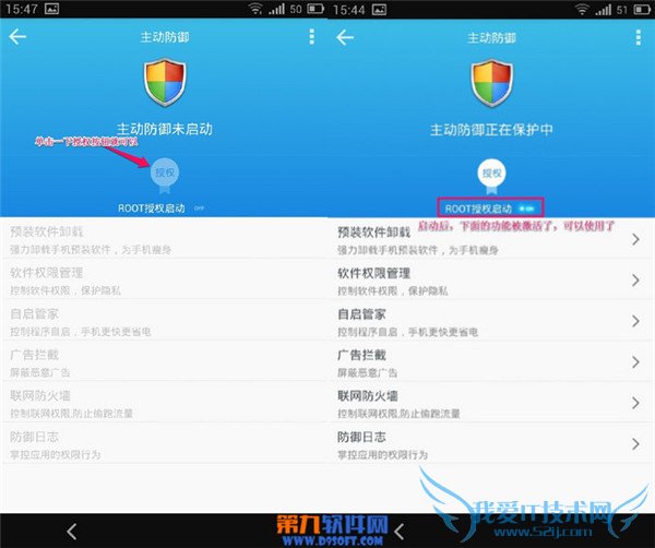 2、点击授权按钮,就可以成功开启主动防御了。开启后,如果想关闭的话,再点击一下,就是关闭了,非常地简单和方便。成功开启后,除了主动防御的功能外,你还可以体验到以下一些给力的功能。详细功能请继续往下看。