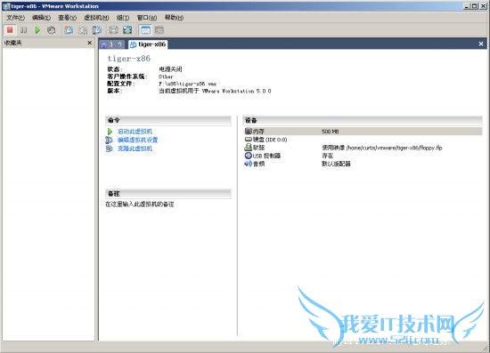 用VMWare5.0打开tiger-x86-flat.img这个镜像,我们可以更改此虚拟机使用的内存和各种外设。