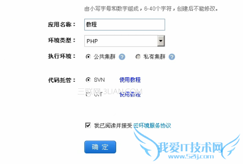 托管设置里应用域名随便填写,然后确定,显示应用创建成功。如图: