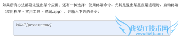 欢迎您访问我爱IT技术网,今天小编为你分享的电脑教程是日常使用电脑方面的电脑常识:mac如何强制退出程序,学会并运用这些电脑常识,让你快速玩转电脑及互联网方面的知识,下面是详细的分享!