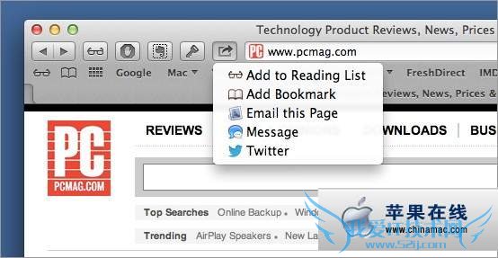 我们知道在Mountain Lion Safari中有一个共享按键,允许用户利用Twitter或信息应用来共享网页,但是它没有默认的键盘快捷。下面我们就教你如何给这个操作设置快捷键。
