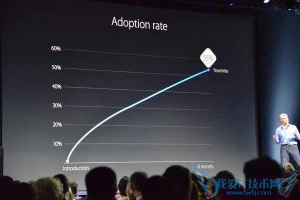 这款产品将一如既往的免费免费推送给消费者,苹果Yosemite用户可以在今年秋天进行免费升级,当然苹果也没忘继续讽刺了一下Win 8.1的7%的升级使用率,以及对比Yosemite 55%的升级使用率。