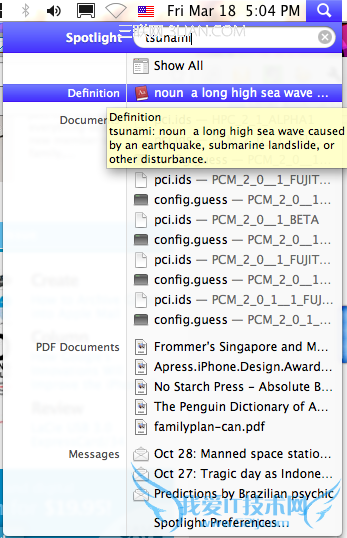 欢迎您访问我爱IT技术网,今天小编为你分享的电脑教程是日常使用电脑方面的电脑常识:Spotlight三个用法窍门,学会并运用这些电脑常识,让你快速玩转电脑及互联网方面的知识,下面是详细的分享!