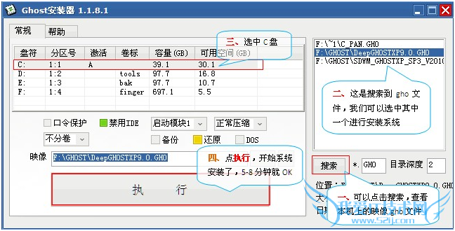 用ghost安装器安装系统只要简单的4步就可以搞定。如下,带图说明