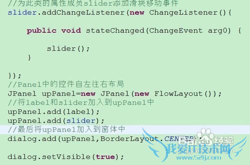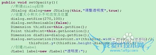 继续在setOpacity()方法中添加代码,在窗体dialog中加入panel控件,再将lable和slider加入到panel中。