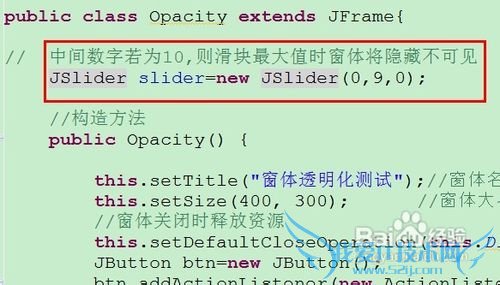 新建setOpacity()方法并在按钮的单击事件中调用此方法,然后在此类中作为属性成员加入JSlider滑块控件。