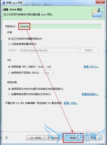 在出现的窗体中的“项目名称”后自定义输入项目名,然后点击“完成”按钮完成项目的创建。