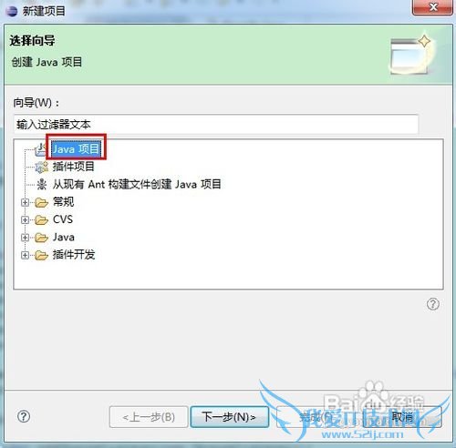 打开Java开发工具Eclipse软件,依次选择“文件”、“新建”、“项目”,在“新建项目”窗口中选择“Java项目”,然后点击“下一步”按钮。