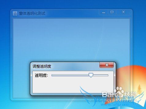 运行Java程序,并点击按钮,然后出现调整透明度的窗体,用户就可以设置窗体透明度,show出你的个性。