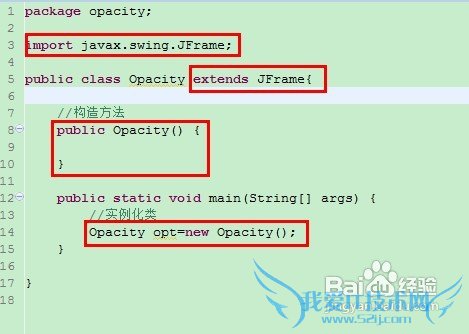 首先,做一些初始化窗体的工作,导入javax.swing.JFrame类,实现JFrame的继承,初始化构造方法头并在main方法内实例化此类以便做测试。
