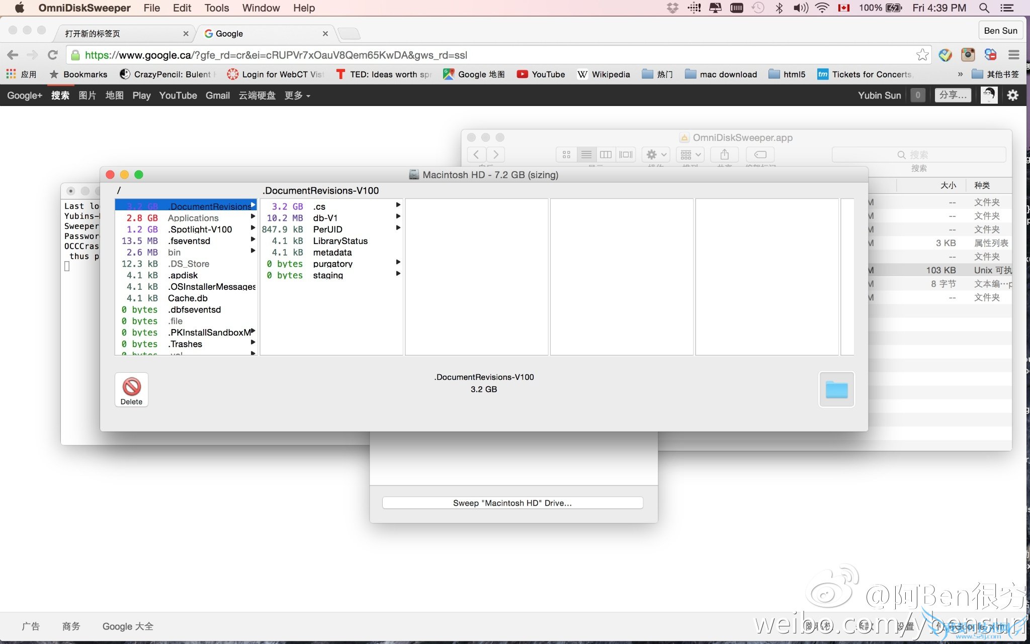 点开后就在这里,然后你可能要等5~10分钟来扫描你的硬盘,请给点耐心。找到DocumentRevisions-V100,如果你用sketch超过一个月,很可能这个就是你硬盘里面最大的文件。把里面的东西杀掉(不要把这个文件夹杀掉,杀里面空间占最多的)。