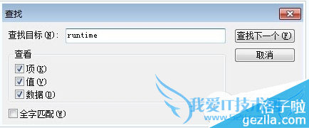 3、点击,出现一个查找框,输入runtime,如下图所示