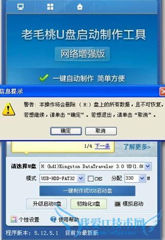 按钮,程序会提示是否继续,确认所选磁盘无重要数据后点是开始制作。