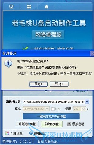 4、制作过程中不要进行其它操作以免造成制作失败。制作完成后正确设置电脑BIOS(设置方法请参照设置U盘启动教程)即可从U盘启动了。为了验证启动制作是否成功,也可以在制作完成后根据提示运行电脑模拟器进行U盘模拟启动。