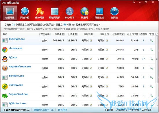 以上就是什么软件可以抢网速的全部内容了,基本上一些占用网速的常用软件小编都例举出来了。当然如果需要查看到底是哪些程序在占用网速的话,都是可以通过360流量防火墙来查看。如图所示: