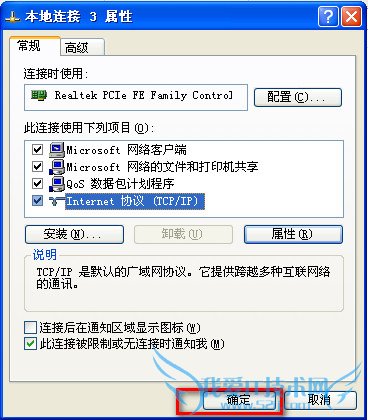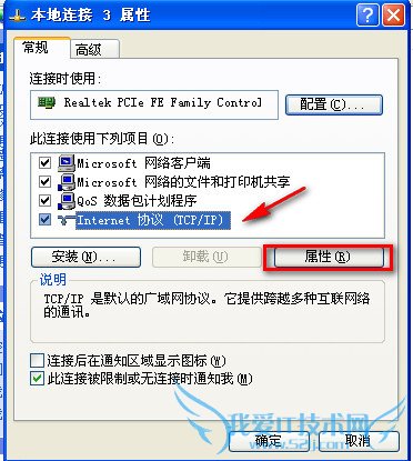 在属性页面中,选择协议包中的Internet协议(TCP/IP),再点击“属性”。