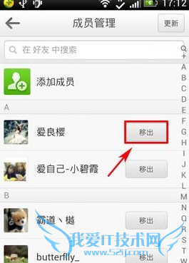 2、在进人成员管理界面,点击“移出”按键,然后在显示出的界面中按“确定”按键。