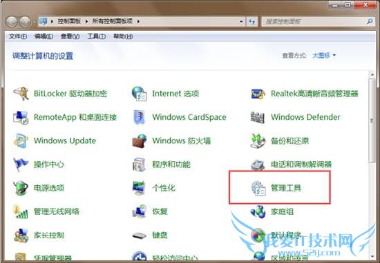 2.在打开的控制面板窗口中,点击打开“管理工具”如下图所示