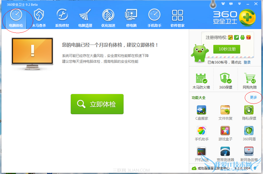 1. 打开360电脑管家,确定是已经升级到9.2版本;