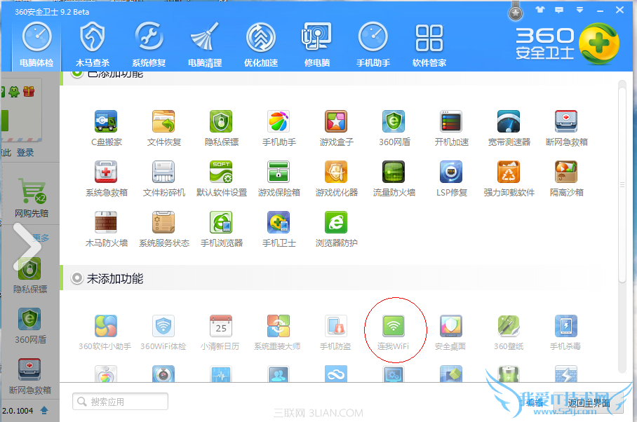 2. 选择电脑体检,然后看一下右侧的功能大全看看是否有连我WiFi的选项;