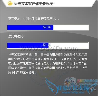 双击安装程序,进入天翼宽带客户端准备安装界面;