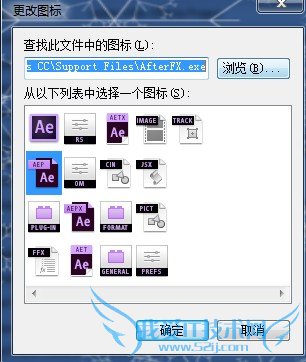 点击后AE所有的文件图标类型都会显示出来,选择正确的图标后点击确定。