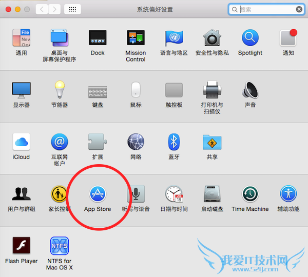 第一步,用户必须先进入“系统偏好设置”,找到Mac app store: