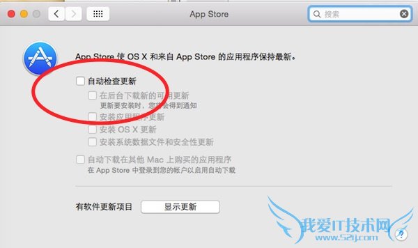 点击进去之后就就能看到Mac App Store的更新设置,这个时候只需要把自动更新设置去掉即可: