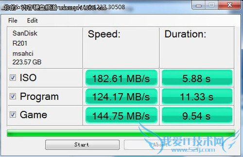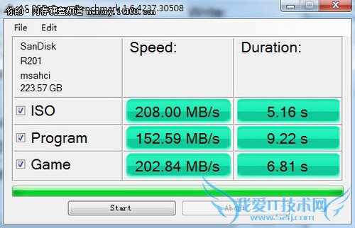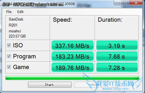 闪迪至尊极速系列240GB固态硬盘运用原生SATA3.0接口在AS SSD模拟文件拷贝测试中,ISO、程序和游戏三种不同文件形式下的拷贝速度分别为337.16MB/s、183.23MB/s、189.76MB/s。而运用SATA2.0接口的速度上和反应时间上都和原生SATA3.0接口方面相差特别大。