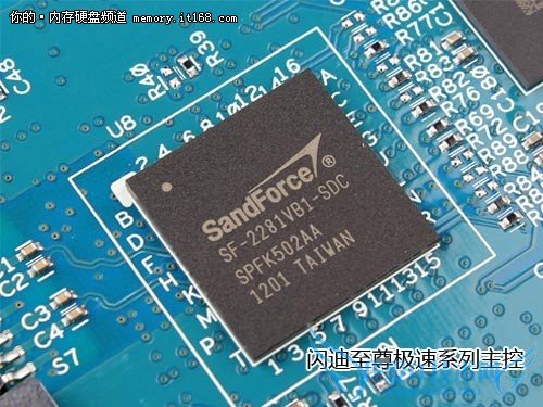 主控芯片为目前主流的SandForce SF-2281VB1-SDC方案,新一代SandForce主控芯片能够兼容市面上大部分内存颗粒,支持TRIM、NCQ等各项优化功能。它的接口方面自采用主流的SATA3.0,理论上最大能获得6Gb/s的传输带宽,从而最大程度发挥出固态硬盘的性能优势。