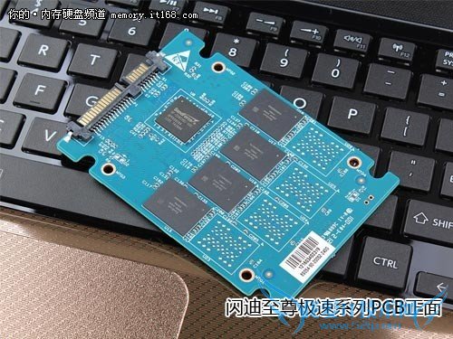 它使用8颗32GB Flash芯片组建了256GB容量,主控放置在一侧面。由于SandForce SF-2281主控芯片的特性,上叙8颗中的一颗32GB Flash的50%容量来做Over-Provisioning Cache(缓存),即实际容量为“256GB-16GB=240GB”。