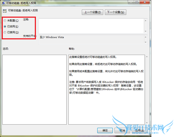 2. 以拒绝写入来举例,双击打开选择“已启用”。
