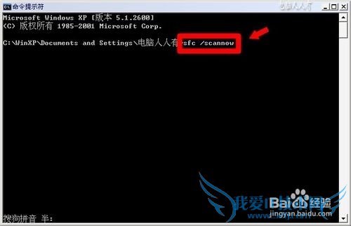 6、在命令符窗口中输入修复命令: sfc /scannow (回车执行)