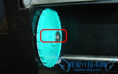 3、安装色带的时候,需要注意将色带芯轴豁口和色带挡板的凸台相对应、吻合(可参见以下安装好的色带回收轴示意图)。