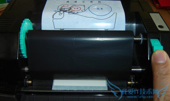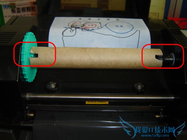 1、标签纸穿过要打印的标签纸的卷心,然后放在相应的位置,参考如下图: