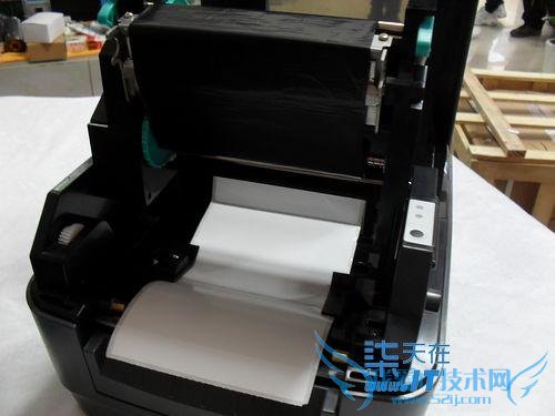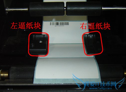 2、标签纸穿过导纸器,然后通过导纸器固定