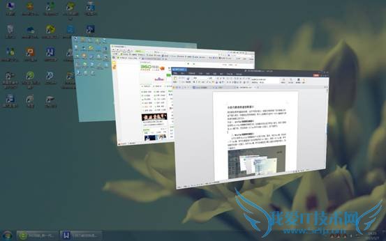 使用Win+Tab快捷键进行3D窗口切换。首先,按住Win键,然后按一下Tab键,即可在桌面显示3D小窗口,每按一次Tab键,就可以切换一次窗口,放开Win键,即可在桌面显示最上面的窗口。如下图所示: