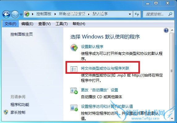 2. 进入默认程序后 选择 将文件类型或协议与程序关联;